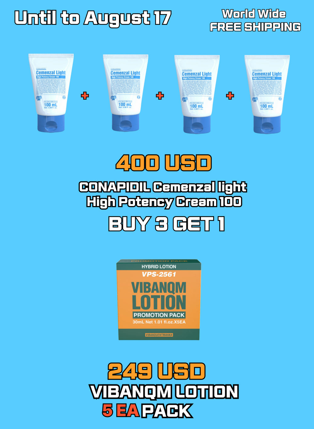 [THREE+ONE] 3+1 CONAPIDIL Cemenzal Light High Potency Cream 100